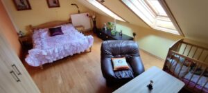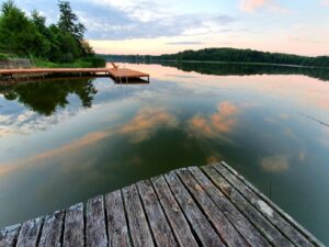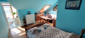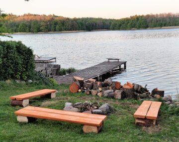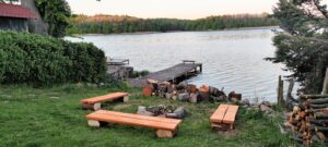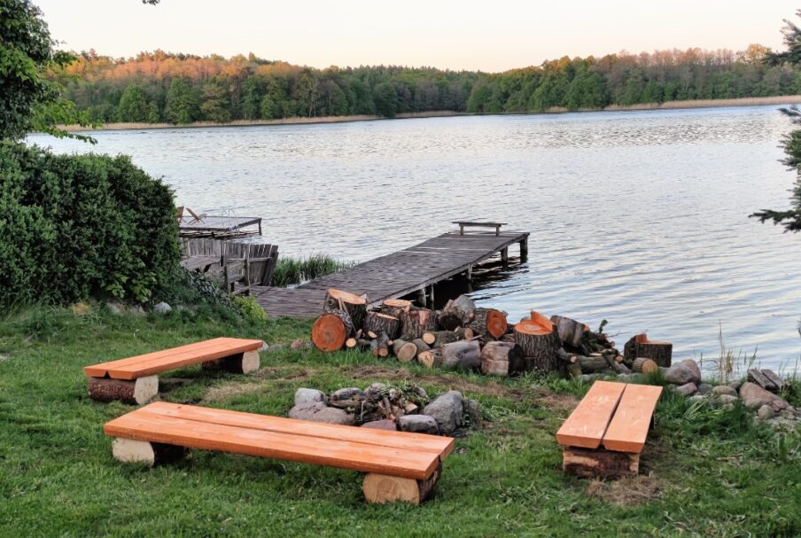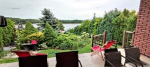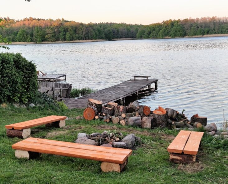 Agroturystyka to nasz drugi dom, 312 metrów, na 3 poziomach, w piwnicy piec CO, a by milej było go pilnować są piłkarze oraz bilard, na parterze ogromny salon z kominkiem, z wystrojem czysto myśliwskim i klasycznymi meblami, TV oraz jadalnia z ogromnym stołem na 12 osób. Dodatkowo w pełni wyposażona kuchnia (mikrofalówka, lodówka, piekarnik, zmywarka), łazienka z wanną i prysznicem oraz wyjście na przestronny balkon z miejscem do siedzenia, jedzenia, leżakami z którego rozciąga się piękny widok na jezioro Dauby. Na piętrze jest 5 sypialni każda z nieco innym specyficznym zaaranżowaniem oraz 2 łazienki – miejsce sypialne dla 10 osób.